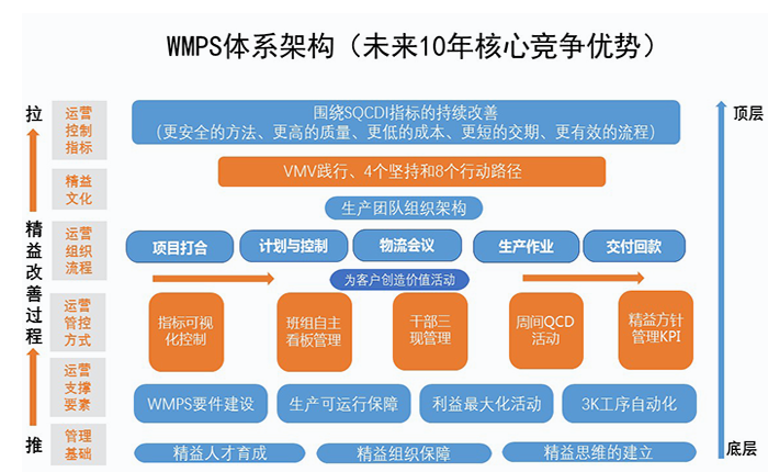 WMPS---是TPS(豐田生產(chǎn)方式)孵化的符合匯美實(shí)業(yè)生產(chǎn)特色的精益生產(chǎn)管理體系。是通過(guò)各個(gè)分公司各自體系構(gòu)建、人員組織、生產(chǎn)現(xiàn)場(chǎng)經(jīng)營(yíng)和對(duì)應(yīng)市場(chǎng)供求變革來(lái)適應(yīng)客戶需求不斷變化的生產(chǎn)運(yùn)行模式。