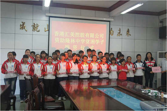 2014年初,匯美實業(yè)捐助50000元,幫助廣西隆林中學完成教學樓、綜合樓鋁合金窗戶的安裝,給學生們提供一個擋風御寒的學習環(huán)境。